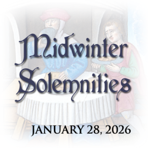The Barony of the Cleftlands cordially invites you to the Midwinter Solemnities on the 28th day of January, from 7:00 to 8:30 in the evening, when Their Excellencies will hold a Baronial Court; during the Solemnities there shall also be a Middle Eastern Feast, prepared by the Cleftlands Cooks Guild, at a cost of $10 per person, with advanced registration required. and opening January 14.